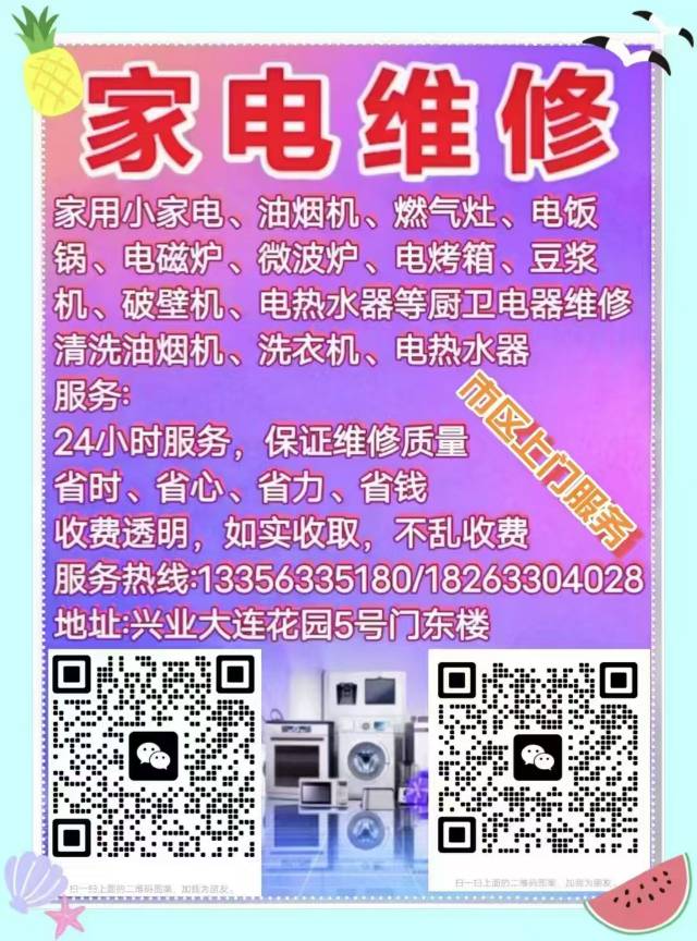 小家电、厨房电器(油烟机、燃气灶、电饭锅,电饭煲、电磁炉,电水壶,豆浆机、电烤箱、微波炉、电热水器等有故障维修